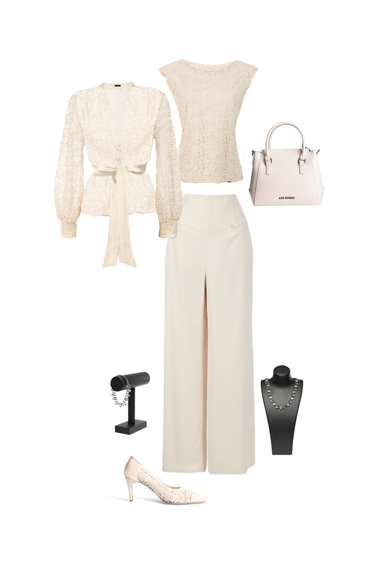 Elegantan kombinezon u nežnoj bež boji, idealan je za posebne prilike.