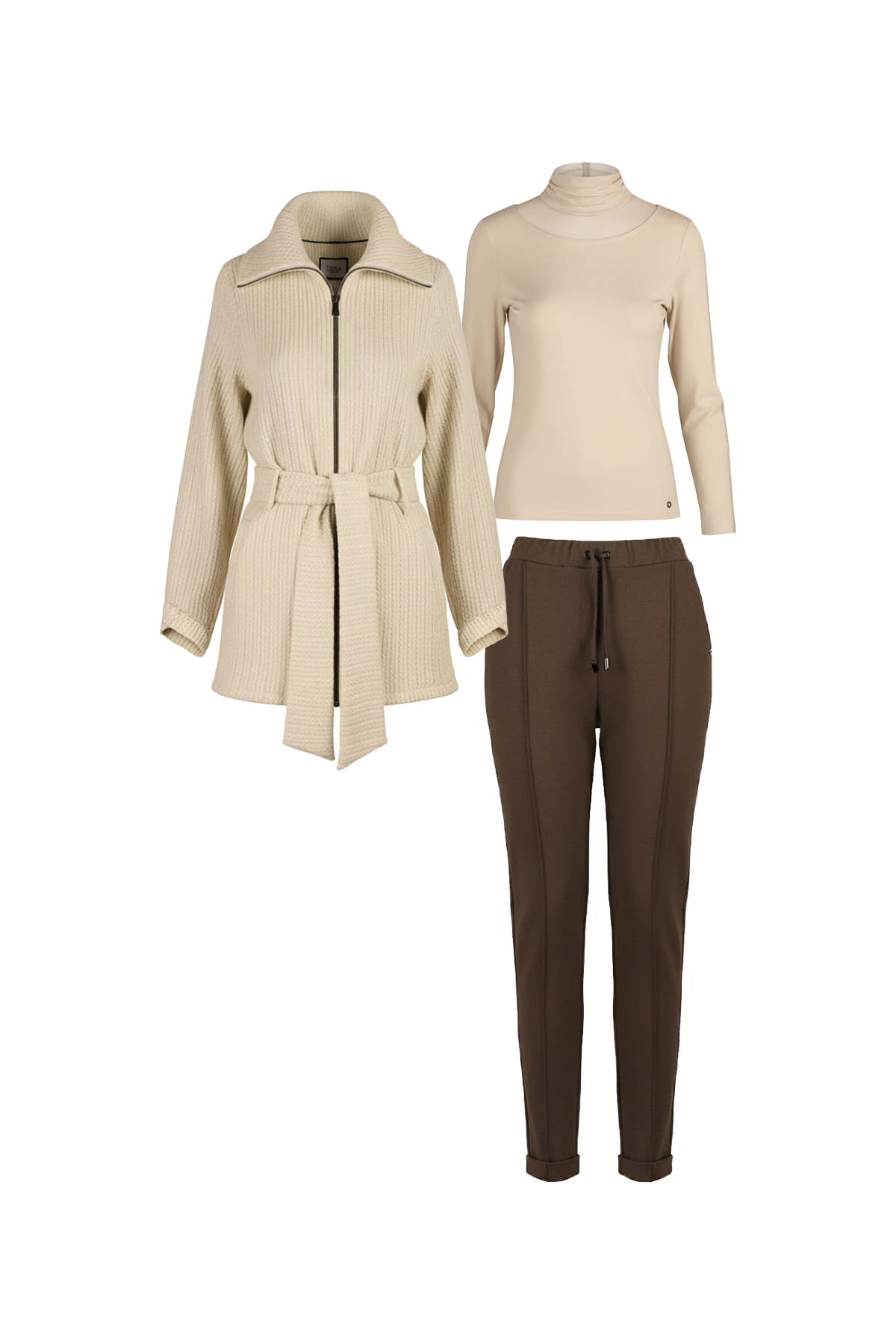 Džemper u nežnoj bež nijansi pruža izuzetnu mekoću i udobnost, ističe struk pojasom, sa...