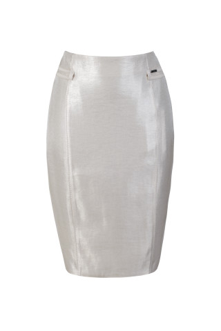 Elegantna suknja A-kroja u srebrnoj nijansi koja unosi prefinjenu otmenost u svaki outfit.