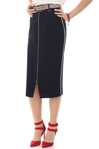 Moderna uska suknja sa rasjferšlusom na prednjoj strani namenjena je damama koje u svoj stil žele da unesu dozu ekstravagancije. Napravljena je od viskoznog platna koje je veoma prijatno na dodir i udobno za nošenje. Kroj prati liniju tela ali i daje dovoljno prostora da se sa lakoćom krećete. Najzanimljiviji detalj svakako je rajsferšlus u prednjem delu gde sami možete podesiti dubinu šlica.