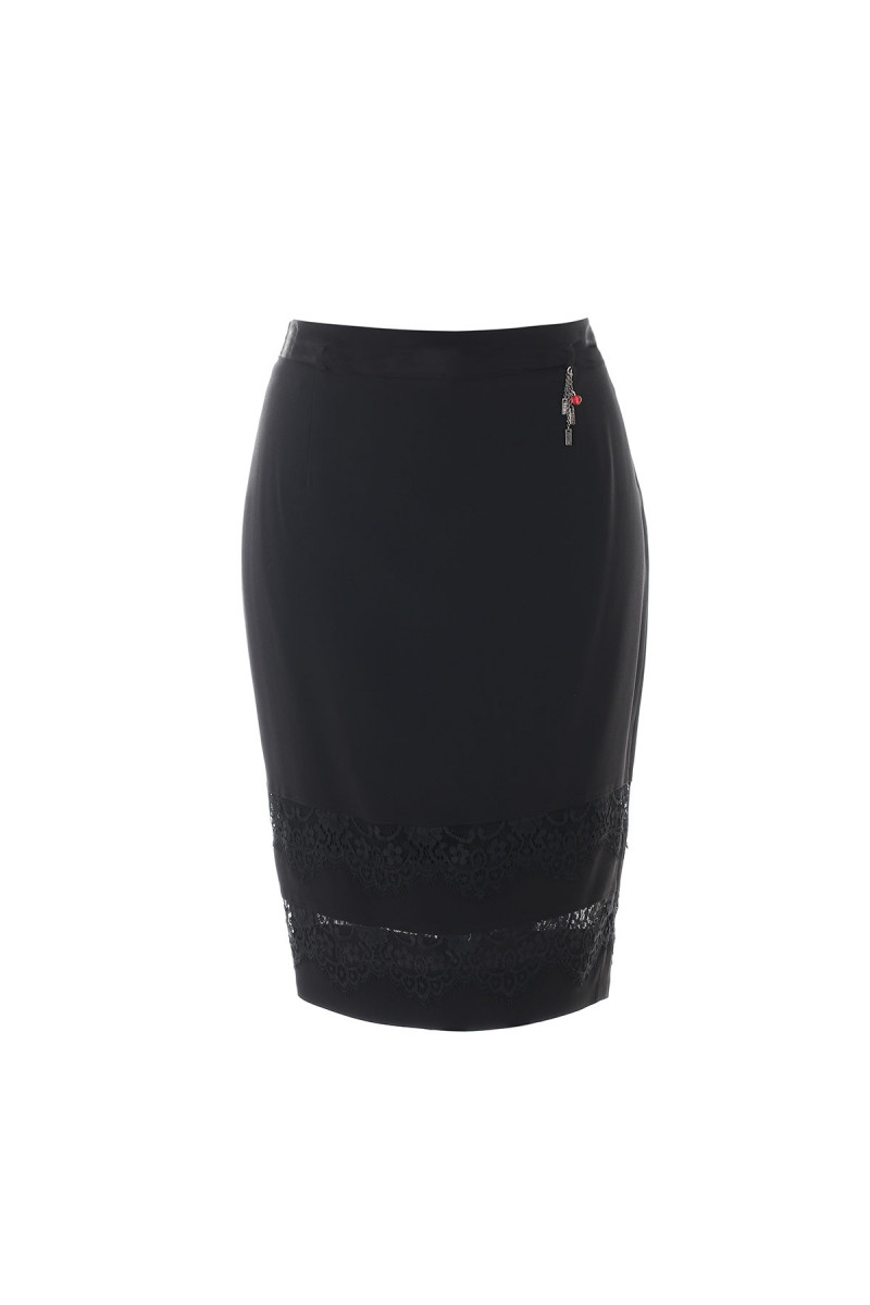 Elegantna uska suknja od viskoznog štofa sa čipkanim detaljima. Sam materijal u sebi sadrži i dozu elastina koja ovom modelu daje značajnu udobnost i lakoću prilikom kretanja. Suknja je postavljena viskoznom postavom što je dodatno čini udobnom za nošenje. U kompletu sa sakoom iz iste linije Vaš outfit biće savršeno stilski kompletiran.