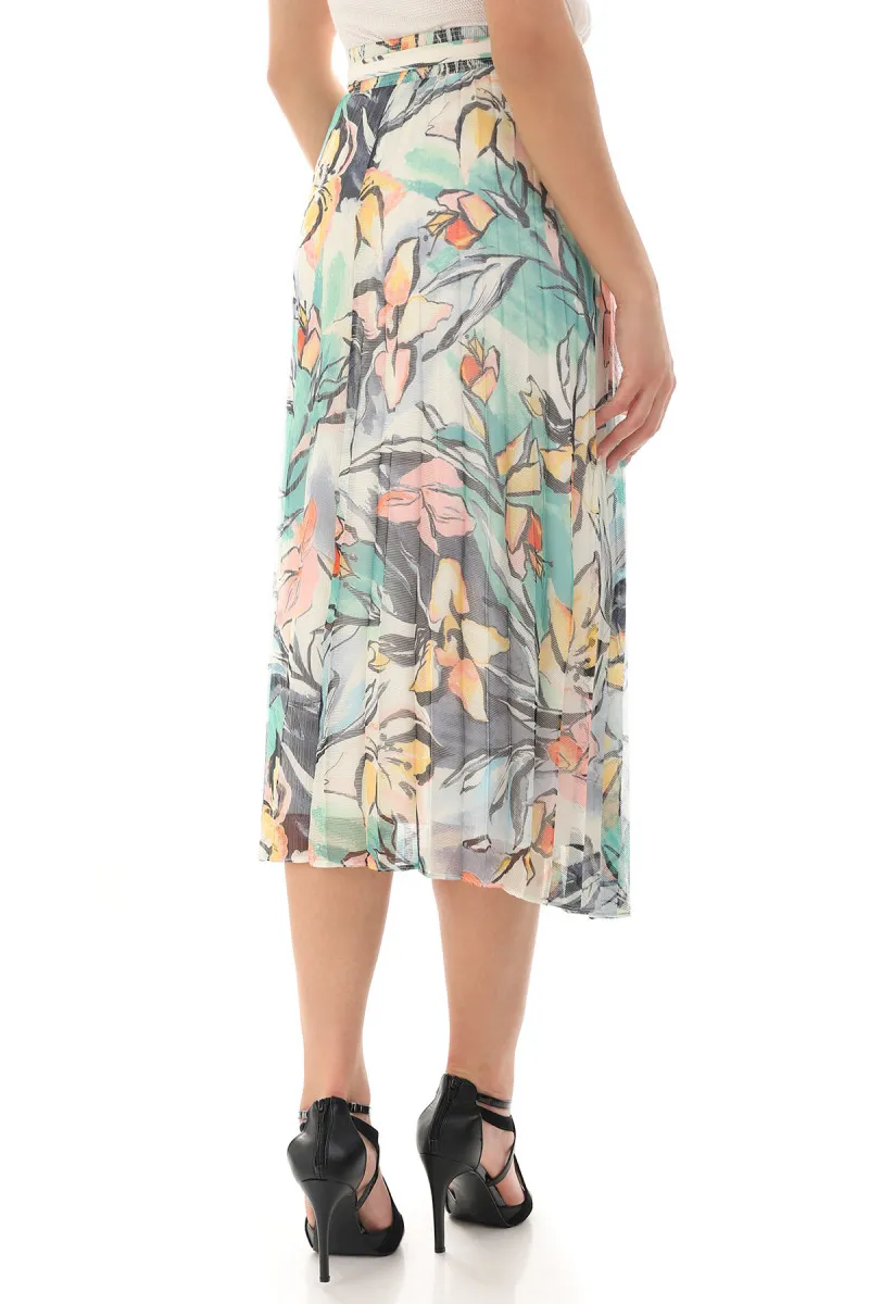 Elegantna plisirana suknja će svojim atraktivnim dezenom osvežiti Vaš garderober. Izrađena je od laganog i prijatnog materijala i postavljena viskoznom tkaninom sa visokim procentom elastina što dodatno utiče na njenu udobnost. Rastegljiv pojas će Vam omogućiti dodatni komfor. Kaiš po želji možete skinuti. Idealan je izbor u mnogim prilikama, kako ležernim, tako i svečanim.