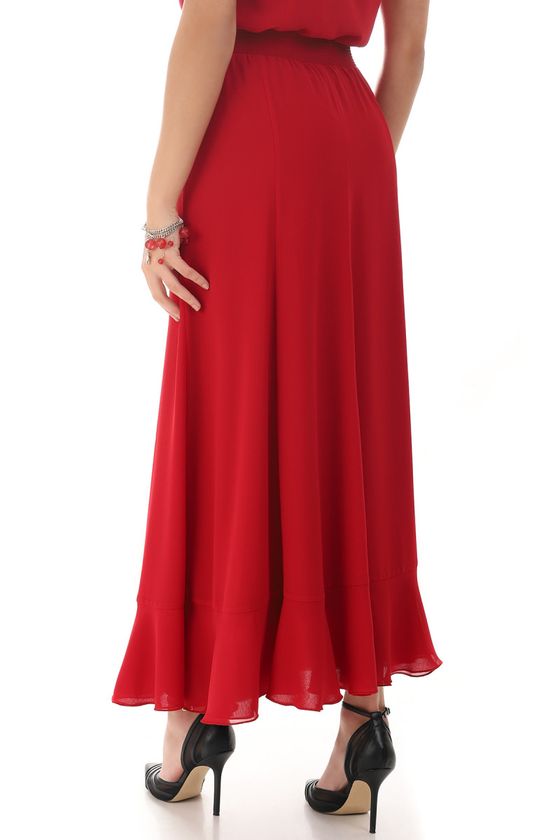 Elegantna duga suknja sa romantičnim dizajnom istaknuće Vaš outfit i učiniti ga savršeno stilizovanim. Veoma prijatan i mekan materijal ovom modelu daje posebnu notu komfora i prijatnosti tokom nošenja. Veoma se dobro prilagođava svakoj građi tela. Idealna je za svečane prilike ali i može biti odličan izbor kod poslovnih i elegantnih stajlinga.