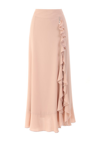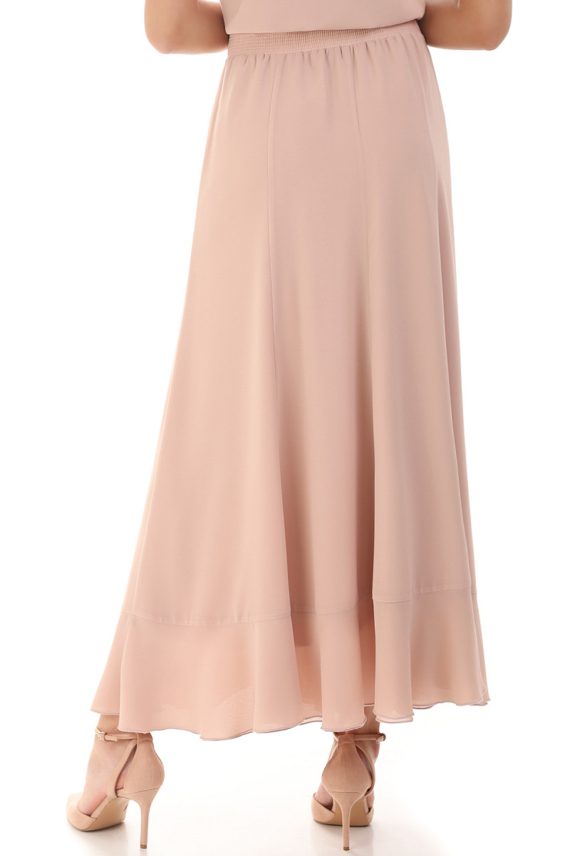 Elegantna duga suknja sa romantičnim dizajnom istaknuće Vaš outfit i učiniti ga savršeno stilizovanim. Veoma prijatan i mekan materijal ovom modelu daje posebnu notu komfora i prijatnosti tokom nošenja. Veoma se dobro prilagođava svakoj građi tela. Idealna je za svečane prilike ali i može biti odličan izbor kod poslovnih i elegantnih stajlinga.