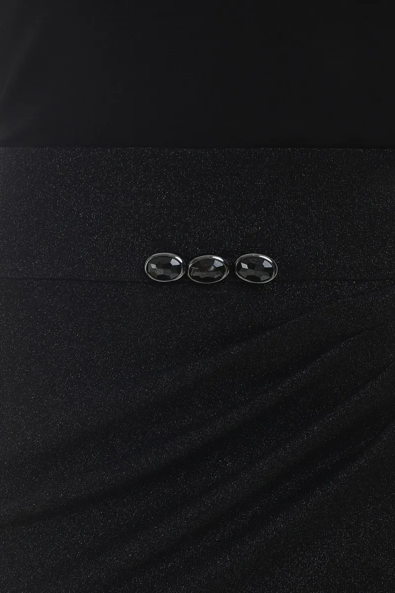 Elegantna crna suknja sa metaliziranim vlaknima ističe ženstvenost na suptilan način.