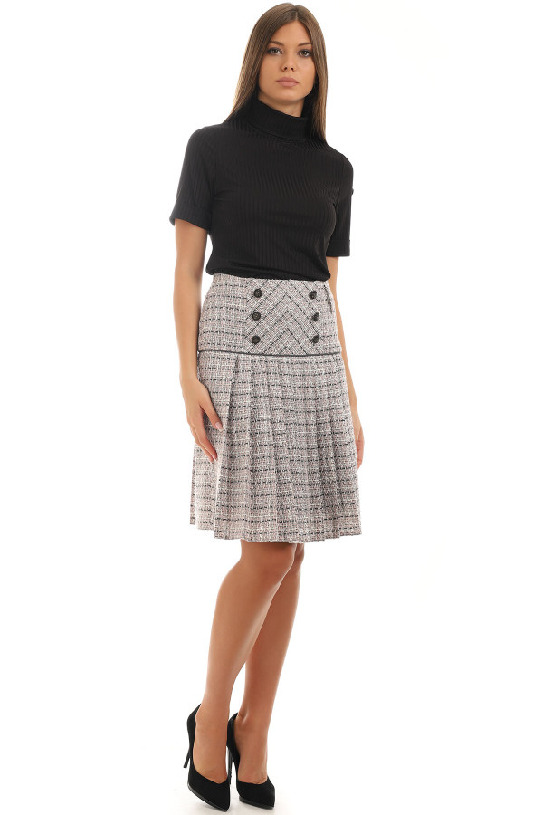 Lepršava suknja u kojoj ćete biti primećeni u svakoj prilici. Atraktivan kroj sa faltama odlično pristaje svakoj figuri. Kombinujte je sa sakoom iz iste linije i dobićete savršen komplet.