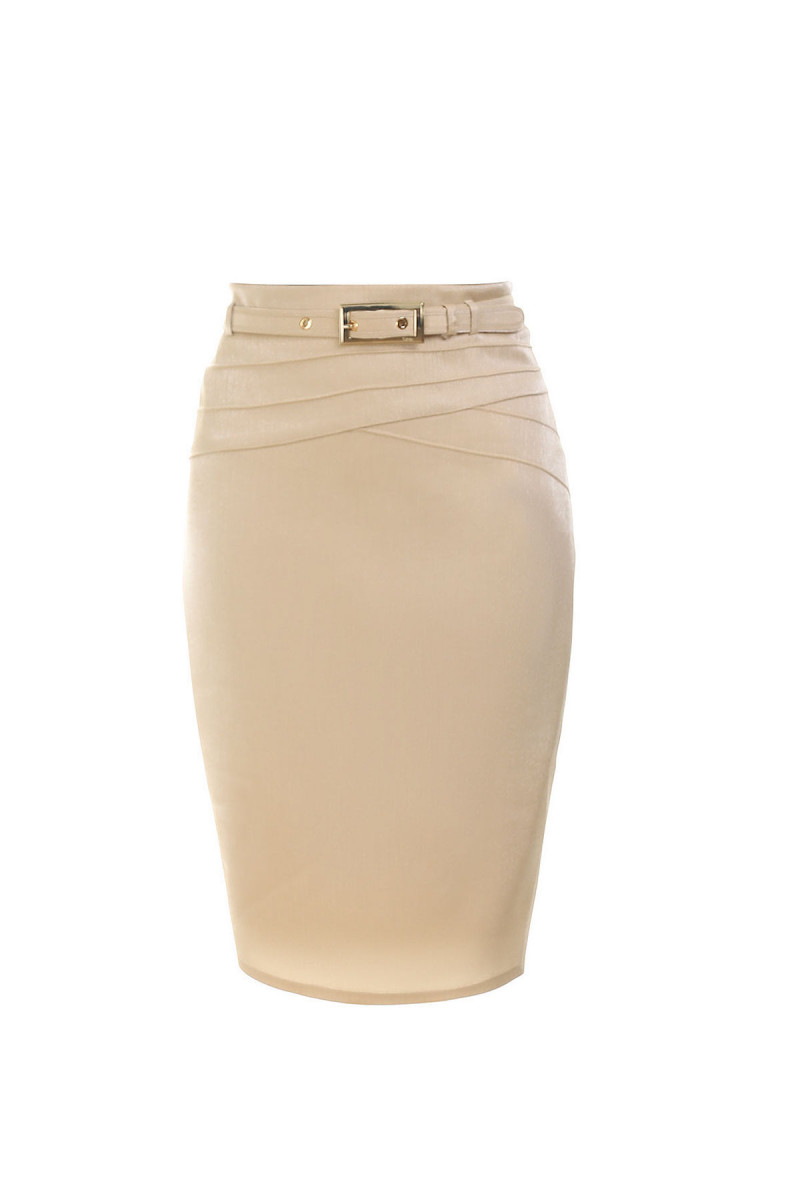 Viskozna pencil suknja bež boje je bazni komad za kreiranje mnogobrojnih outfita.