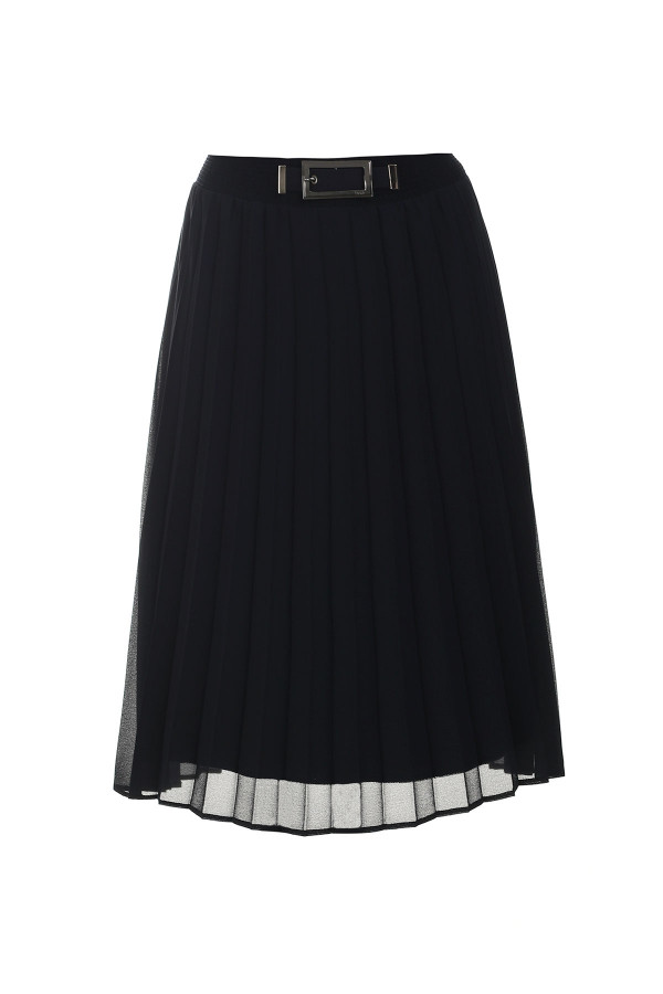 Elegantna plisirana suknja u crnoj boji koju lako možete kombinovati sa bluzama i rolka...