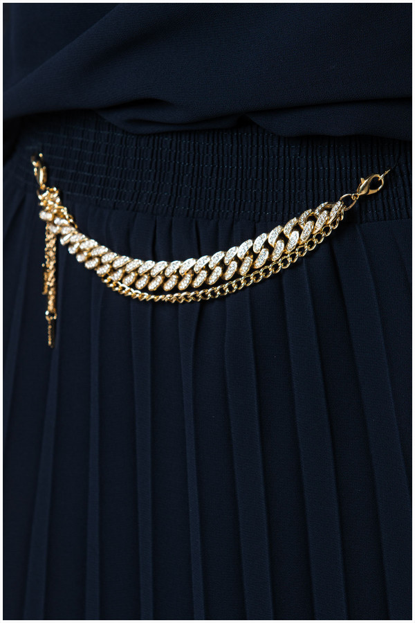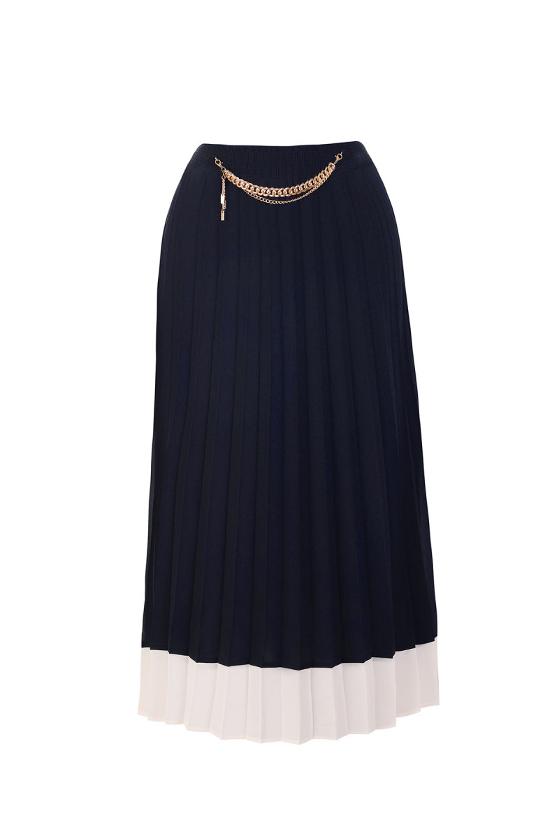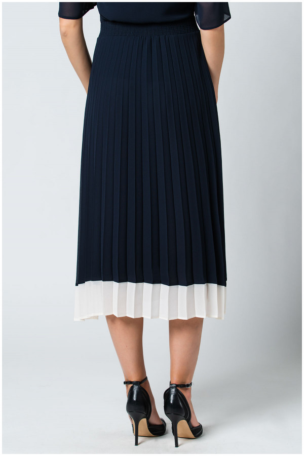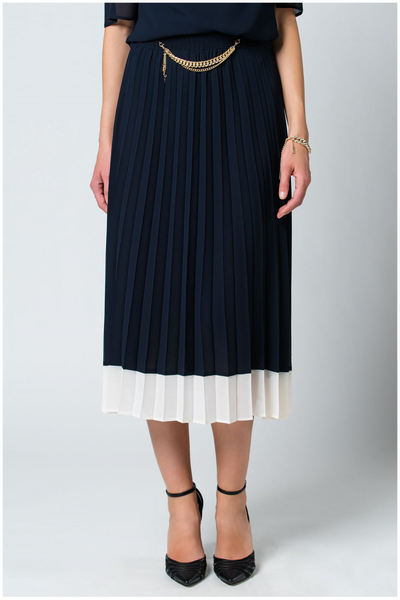 Duga plisirana suknja modernog kroja koju možete kombinovati sa bluzom iz iste liniije i dobiti efekat haljine.