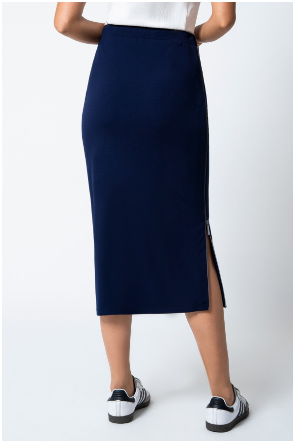 Trendi uska suknja sa podesivim rajsferšlusom kojim možete sami odrediti dubinu šlica sa bočne strane. Viskozni materijal sa visokim procentom elastina ovom modelu daje izuzetnu moć rastezanja, pa će Vam nošenje ove suknje biti veoma udobno.