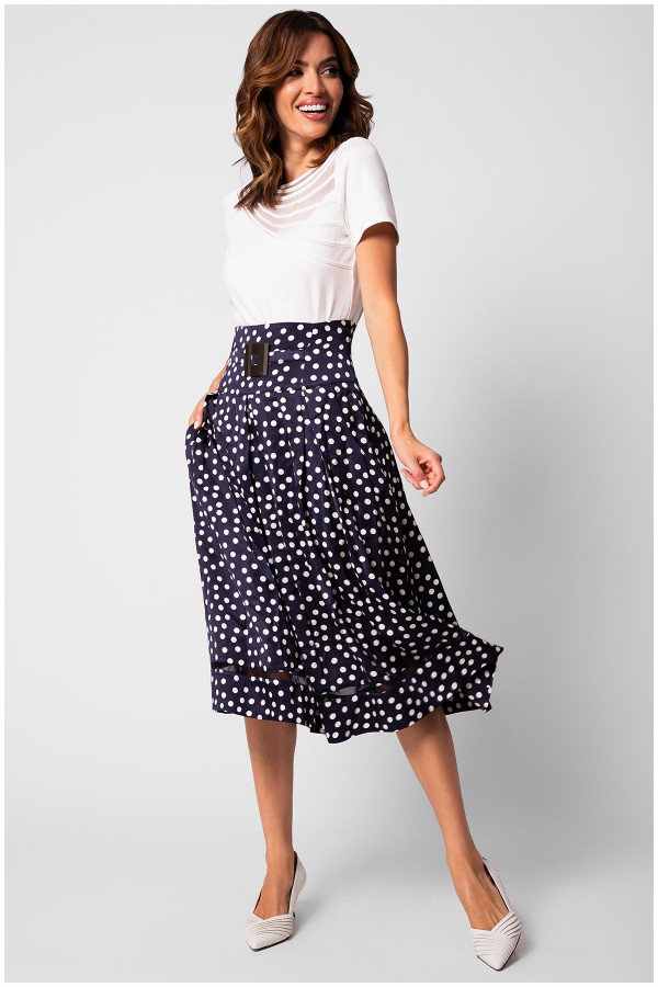 Elegantna midi suknja savršeno se kombinuje sa modelima iz iste kolekcije, bilo da pref...