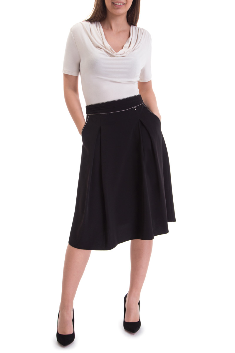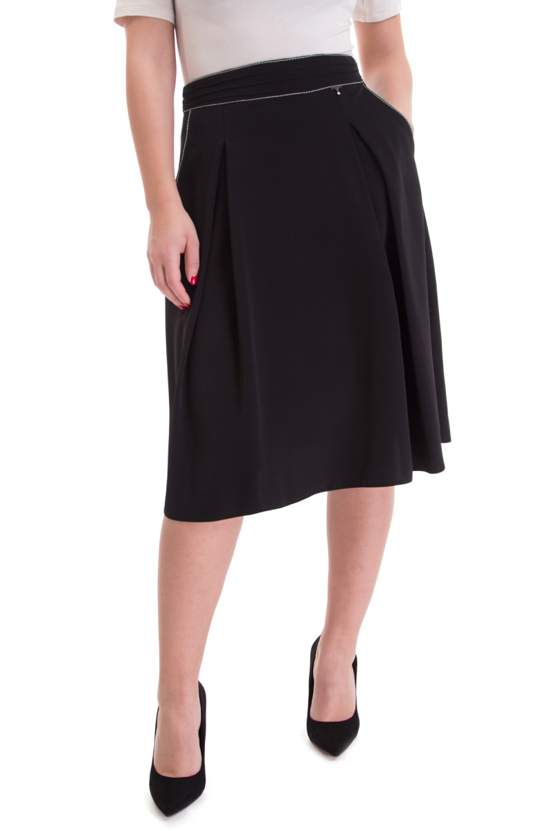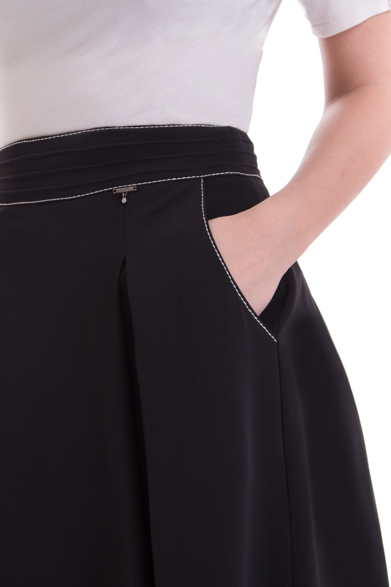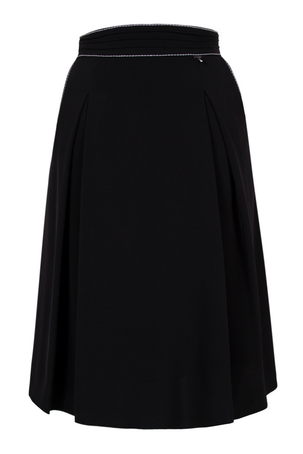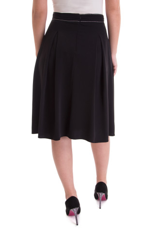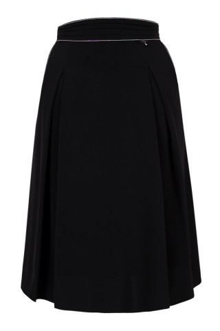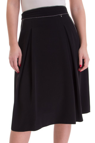 Elegantna suknja, A kroja, od štofa sa elastinom dužine do kolena. Struk naglašava široki pojas. Idealno se kombinuje sa tunikama, košuljama i bluzama iz naše ponude. U kombinaciji sa sakoom kraćeg kroja osećaćete se posebno, a Vaše okruženje ćete ostaviti bez daha. Pravi je odevni komad za poslovne sastanke, kao i za svečane prilike.