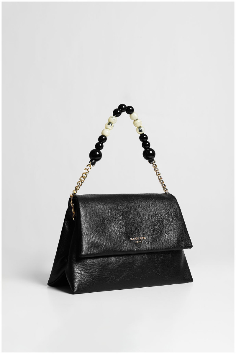 Elegantna tašna na preklop sa ukrasnom ručkom, napravljena od najkvalitetnije veštačke kože. Ručka je ukrašena perlama u crnoj i zlatnoj boji, što ovom modelu dodaje notu elegancije i originalnosti. Unutrašnjost tašne je prostrana što Vam omogućuje da smestite sve što Vam je potrebno. Savršena za moderne žene koje žele spoj funkcionalnosti i stila, ova tašna će upotpuniti svaki outfit.