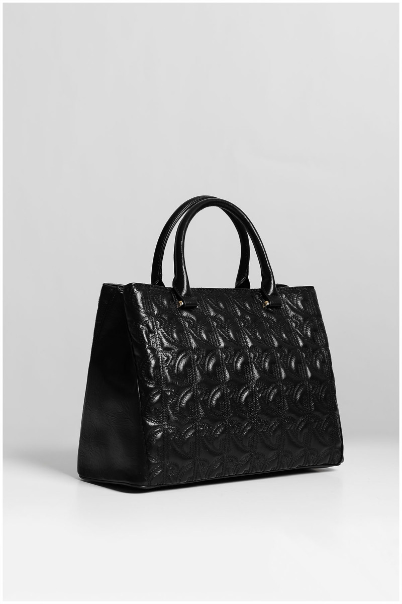 Elegantna tašna sa efektnim dezenom napravljena od najkvalitetnije veštačke kože. Njena klasična crna boja omogućava lako kombinovanje sa različitim stilovima. Model poseduje prostranu unutrašnjost što Vam omogućuje da smestite sve što Vam je potrebno. Idealna za svakodnevne kombinacije ili posebne prilike, ova tašna je savršeni modni dodatak za svaku modernu ženu koja želi spoj funkcionalnosti i stila.