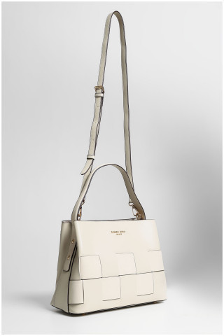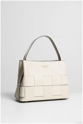 Elegantna tašna sa jedinstvenim detaljima u vidu prepletene kože. Njena klasična bež boja omogućava lako kombinovanje sa različitim stilovima. Ovaj model poseduje prostranu unutrašnjost što Vam omogućuje da smestite sve što Vam je potrebno. Idealna za svakodnevne kombinacije ili posebne prilike, ova tašna je savršeni modni dodatak za svaku modernu ženu koja želi spoj funkcionalnosti i stila.