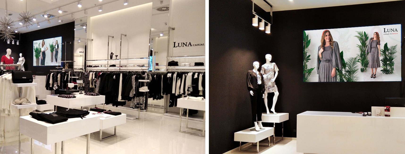 U stilizovanom i moderno uređenom enterijeru dočekaće Vas profesionalan i ljubazan LUNA tim koji će Vam pomoći pri izboru idealnog modela ili celokupnog outfit-a, a ukoliko to želite, osim praktičnih saveta prilikom kupovine, možete se osloniti i na modne savete iskusnog osoblja, usmerene na Vaš lični stil.