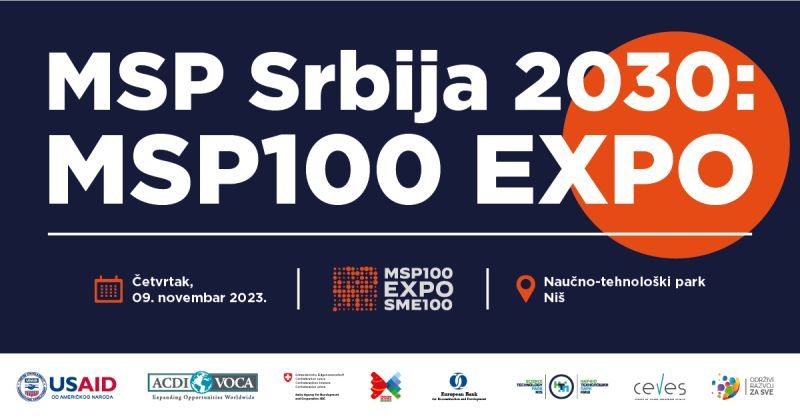Druga godišnja konferencija „MSP100 Expo 2023: Ljudi su uspeh“ održana je u Naučno-tehnološkom parku u Nišu, 9. novembra. Cilj ovodišnje konferencije bio je da kroz međusobnu razmenu korisnih iskustava i dobrih praksi između MSP 100, vodećih domaćih malih i srednjih preduzeća izabranih po jasno definisanim kriterijumima, podrži njihov razvoj i saradnju, kao i da ukaže na potencijal koji ova preduzeća imaju u održivom razvoju Srbije.