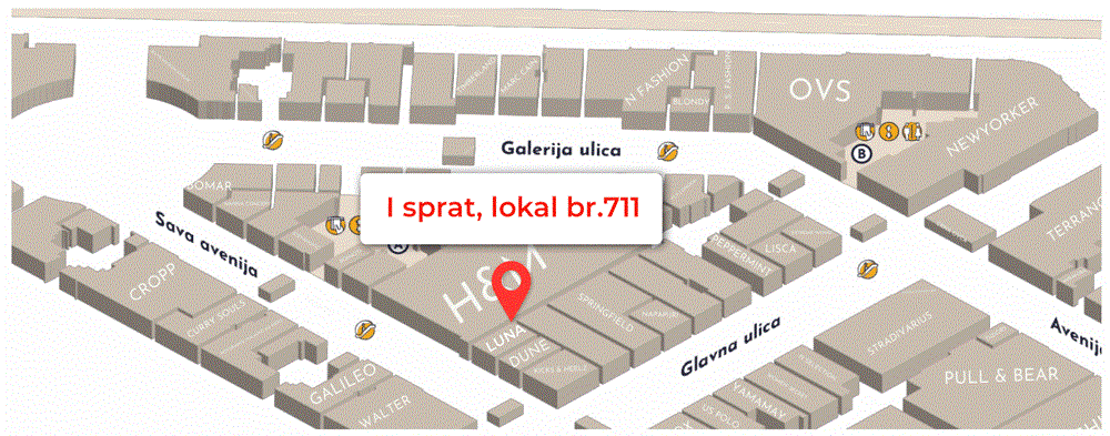 Sa velikim zadovoljstvom vas obaveštavamo da se Luna concept store od 1. marta nalazi na novoj lokaciji u tržnom centru Galerija – Sava Avenija, I sprat, lokal 711.