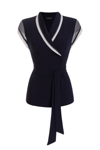Tunika, ki bo v toplih dneh na zanimiv način nadomestila srajco ali jakno. V kombinaciji s hlačami enakega dizajna bo ustvarila vtis visoko stiliziranega outfita, ki bo pustil vtis tako v poslovnih kot vsakdanjih priložnostih.