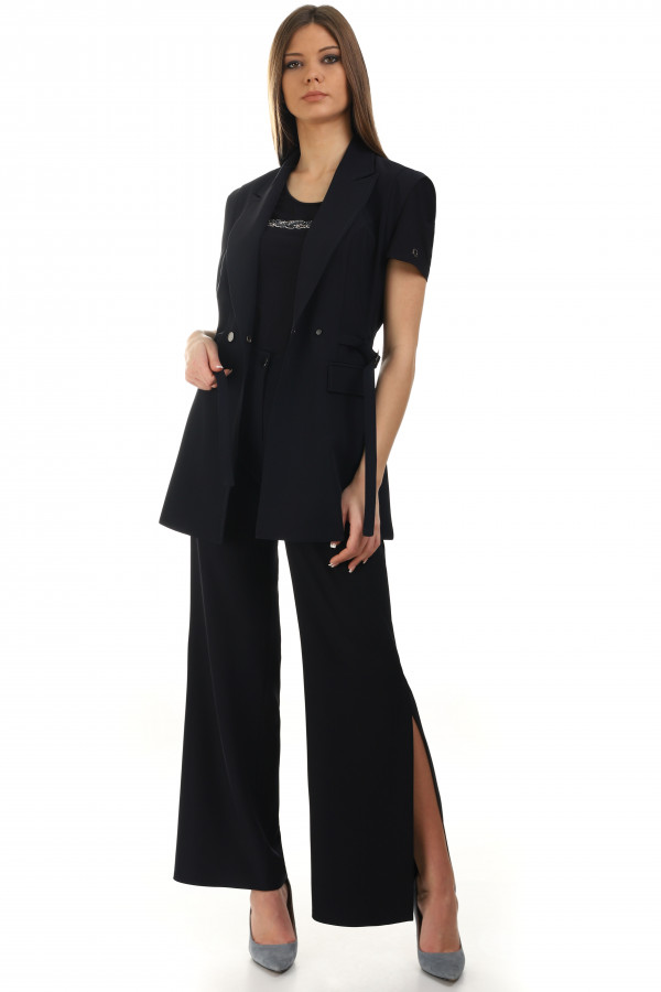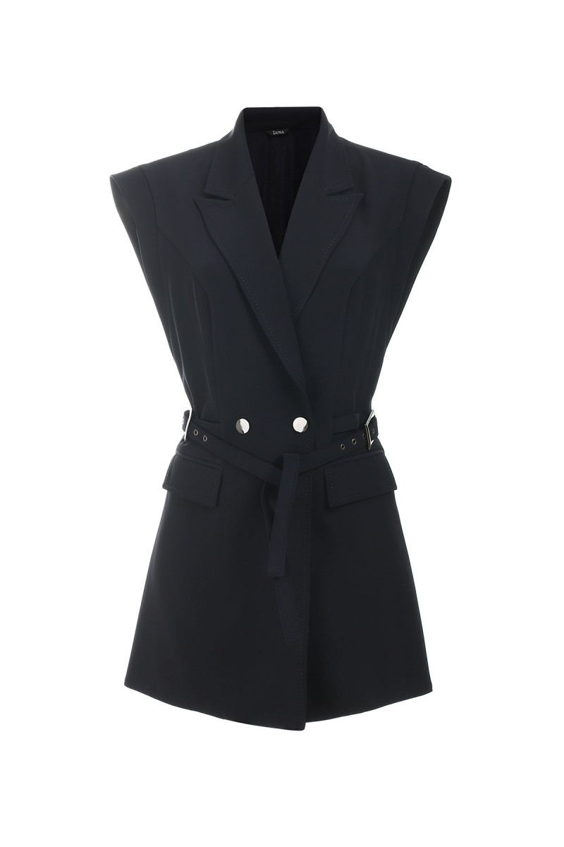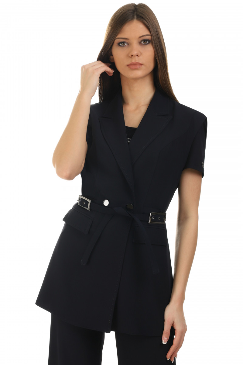 Eleganten ženstven brezrokavnik je idealen način za dopolnitev outfita. Zelo funkcionalen model z žepi in pasom vam poleg brezčasnega videza zagotavlja občutek udobja med nošenjem. Kombinirate ga lahko s hlačami iz iste linije in dobili boste popoln outfit.