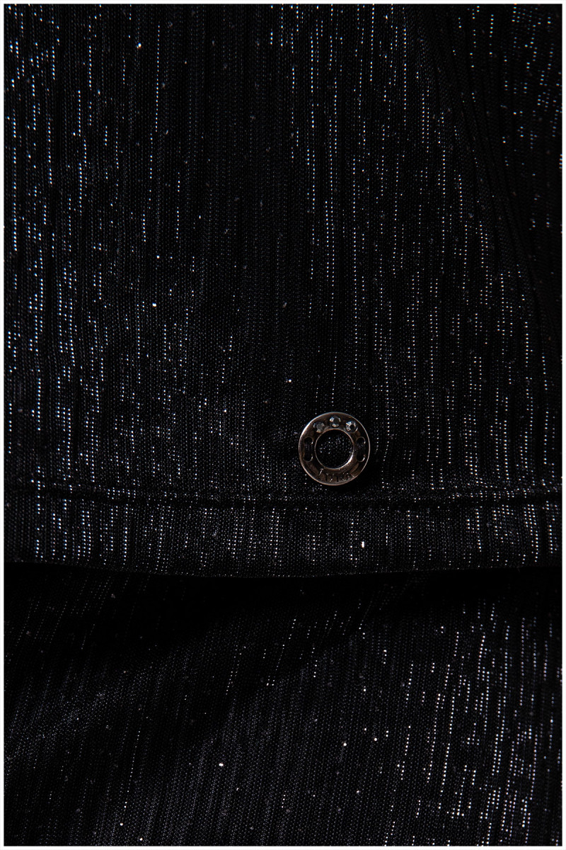 Elegantno kratko krilo s metaliziranimi vlakni, katerega kroj sledi liniji telesa.