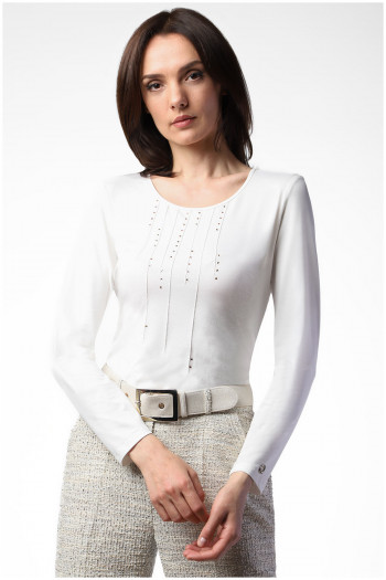 Bela bluza iz viskoze z zlatimi cirkoni je odlična za kombiniranje s številnimi Luna kr...