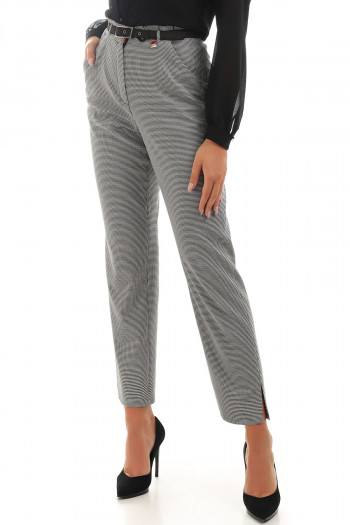 Elegantne široke hlače z globokim pasom z izrezi v stranskem delu.