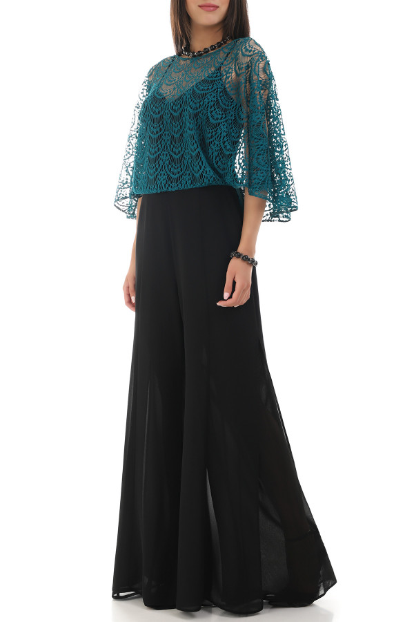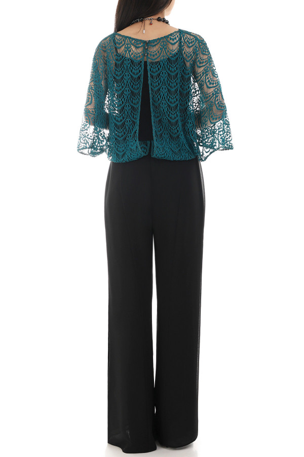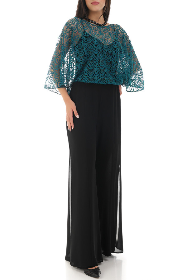Privlačen pajac s čipko je model, v katerem se bo vsaka ženska počutila močno in zelo elegantno. Čipke bodo Vaš videz naredile čuten in zapeljiv. Zaradi širokih hlačnic, se boste v tem modelu počutile zelo udobno. Prilega se vsem postavam in spretno pokriva vse pomanjkljivosti.