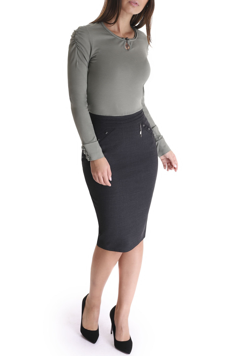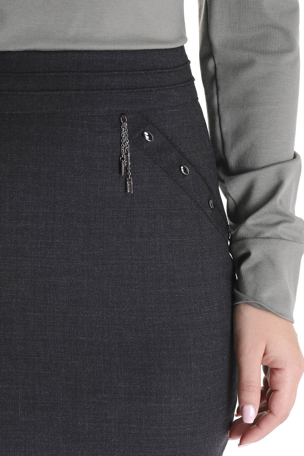 Žensko ozko krilo, ki sledi liniji telesa, je okrašeno s metaliziranimi šivi v predelu bokov. Udobje zagotavlja sam rez in visok odstotek elastina v materialu. V kompletu s suknjičem iz iste linije bo vaša obleka stilsko popolna.