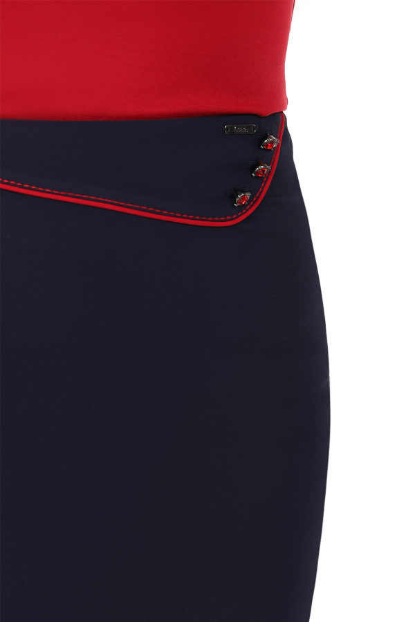 Elegantno ozko krilo s poševnim pasom je model, ki se enako dobro prilega vsaki telesni strukturi. Njegovo udobje se odraža v visokem odstotku elastina v materialu. Odlično se poda k jakni iz iste linije.