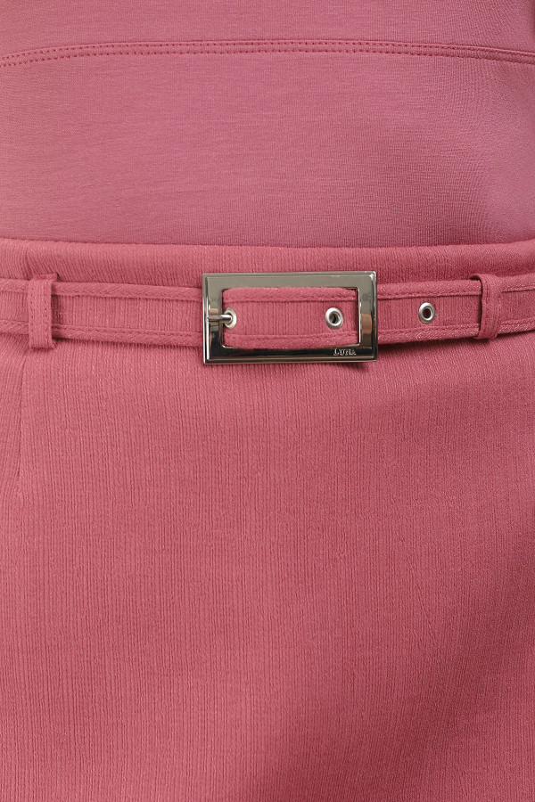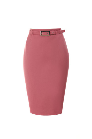 Romantično ozko roza krilo s pasom. Model je izdelan iz viskoze - naravnega materiala, ki je precej udoben in prijeten za nošenje. Kroj popolnoma sledi linijam vašega telesa in bo na subtilen, a učinkovit način poudaril vašo ženstvenost. Pas je praktičen detajl, ki doda prefinjenost, vendar ga lahko odstranite. Kombinirajte ga s suknjičem iz iste linije in dobili boste sanjski outfit.