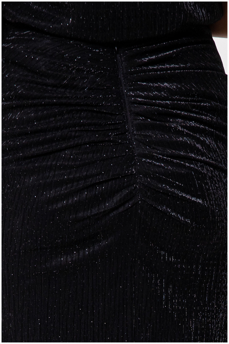 Elegantno kratko krilo s metaliziranimi vlakni, katerega kroj sledi liniji telesa.