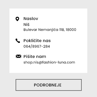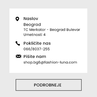 LUNA concept stores so standardizirana in prepoznavna prodajna mesta, ki svojim kupcem omogočajo udboje nakupovanja na okoli 100m2 površine na atraktvinih lokacijah. Koncept maloprodajnih objektov obeležuje atraktiven in posebno dizajniran interier, ki spremllja filozofijo LUNA blagovne znamke.