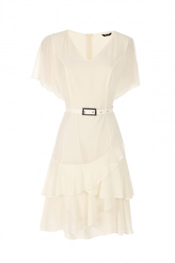Ženstvena kratka obleka z volančki primerna za vse priložnosti.