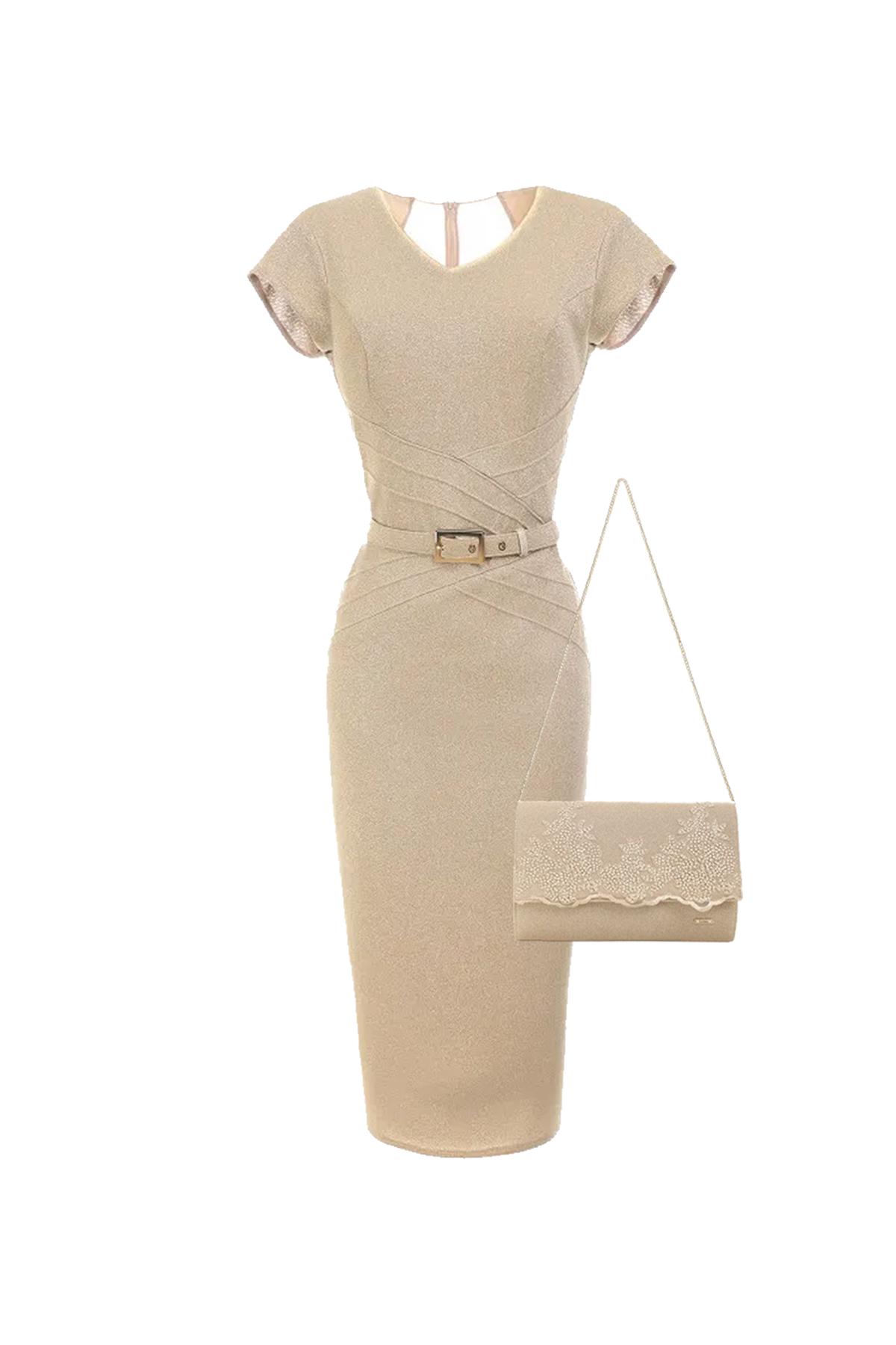 Glamurozna oprijeta obleka z metaliriziranimi vlakni je odlična izbira za svečane prilo...