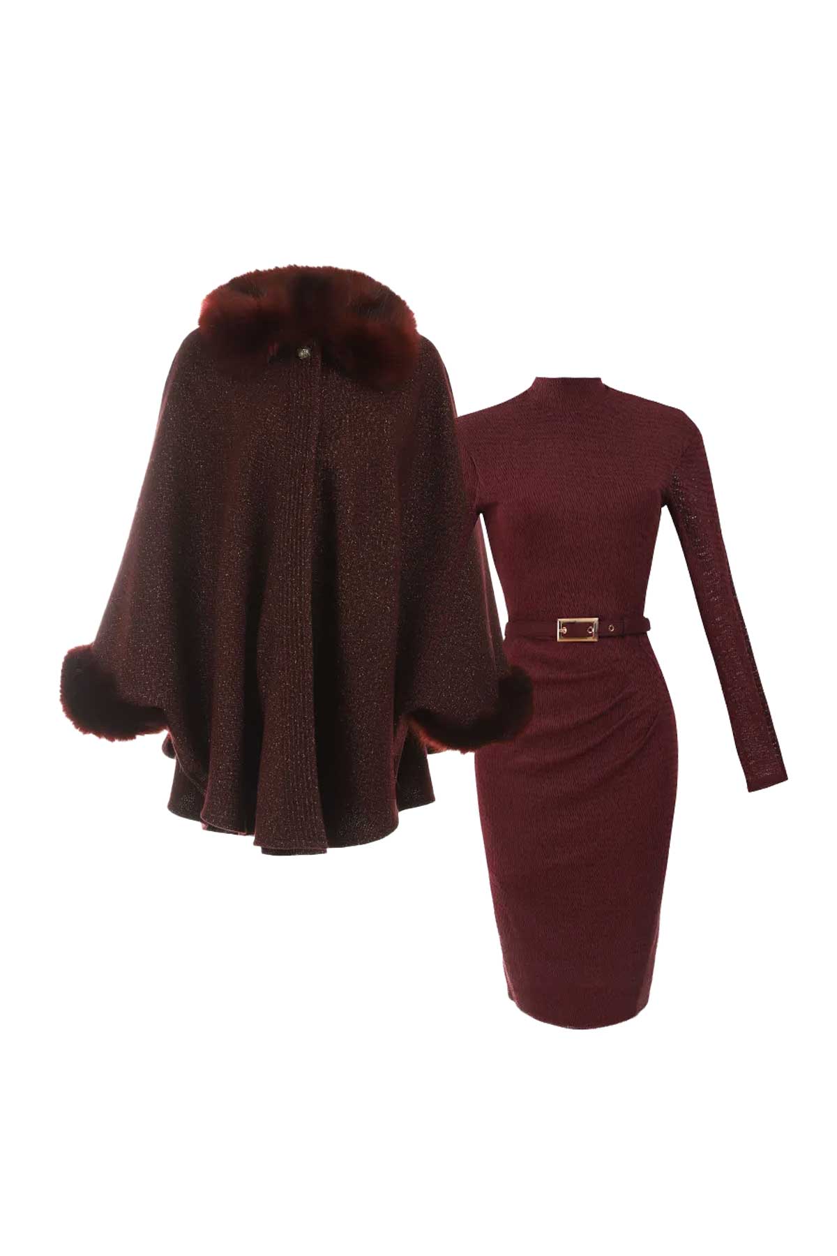Elegantna pelerina v bordo odtenku prepletena z lamelnimi vlakni je idealna za hladne dni.