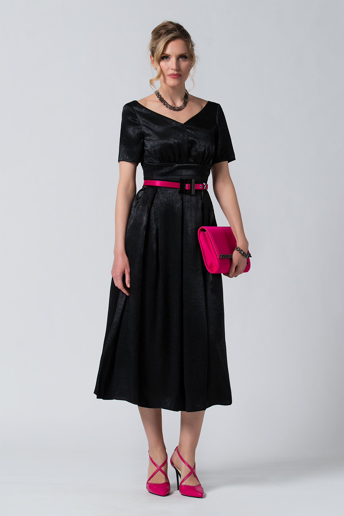 Midi obleka A-kroja v črni barvi se odlično kombinira s čevlji in nakitom iz linije Lun...